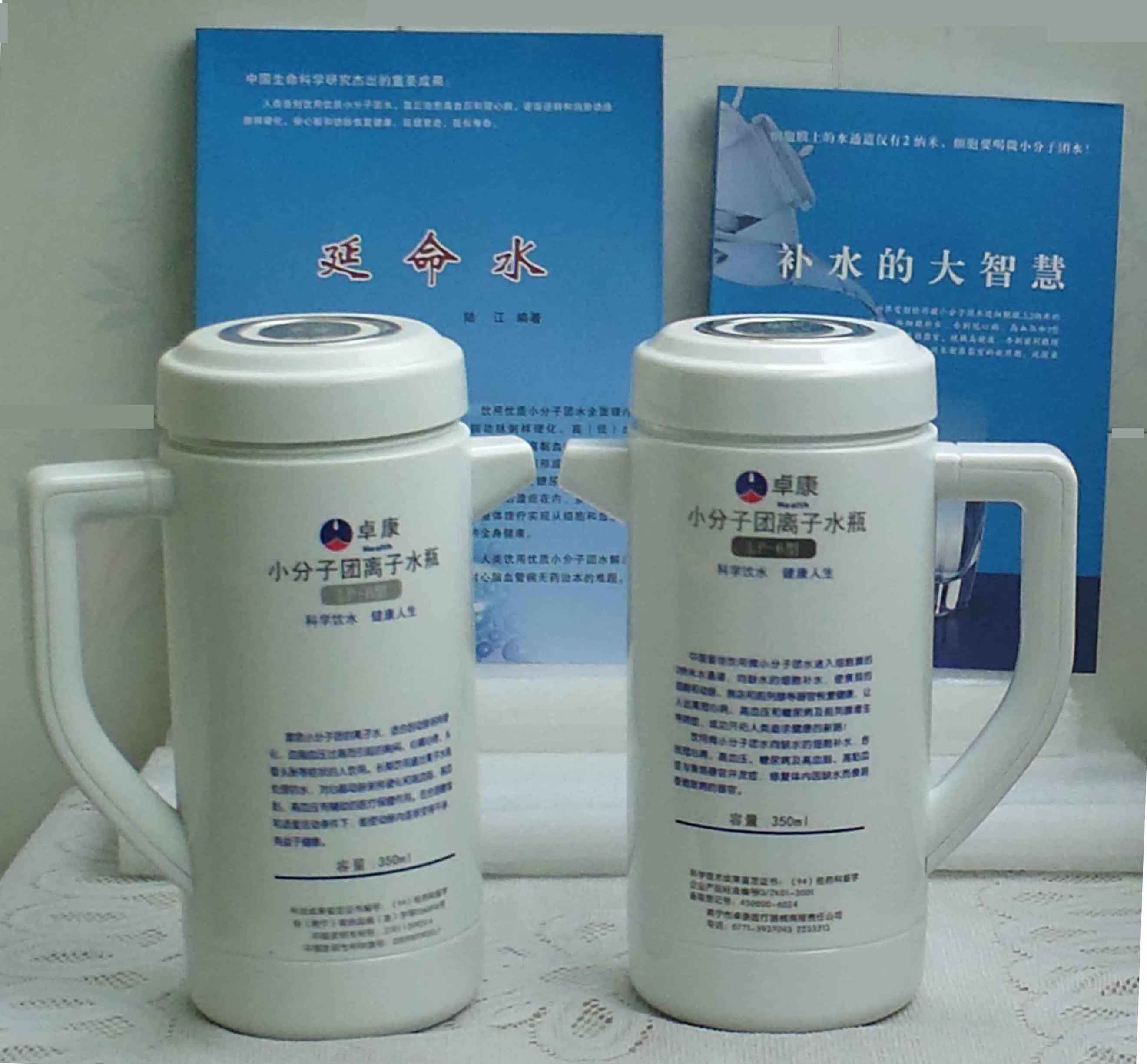 本品大量用戶的使用效果表明,能治愈冠心病、腦動脈硬化、原發(fā)性高(低)血壓、高血脂、高粘血癥、高血尿酸癥(痛風)和2型糖尿病、衰弱器官并發(fā)癥(前列腺增生、腎衰與尿毒癥)及中風后遺癥等療效好。產(chǎn)品配信譽卡。使用壽命30年,不換芯,易清洗。團購優(yōu)惠。從郵局匯款,匯費1%,地址按本頁下方地址、聯(lián)系人寫。從銀行匯款,請點擊[聯(lián)系匯款]欄,從工商銀行匯款,建設銀行、農(nóng)業(yè)銀行匯款,均免收匯費,匯款后20--30分鐘內發(fā)短信,可用微信轉帳,均免匯費,微信號即手機號13768308380。匯款后,告知你的姓名和地址,我公司聯(lián)系人手機號是:13768308380。卓康牌離子水瓶為我公司獨家生產(chǎn),郵購產(chǎn)品配《補水的大智慧》彩印書一本,另配四季出版社出版的新書《補水的大智慧》一本,并配光盤一張(含央視主持人釆訪陸江的對話視頻)。目前市場和"淘寶網(wǎng)"上有人兜售假冒的偽品,望讀者審察辯別真?zhèn)?,造假者剽竊假冒本公司的各種認證、獲獎獎項、專利號和外包裝盒上的中英文字,包括科技成果的鑒定意見等,請讀者注意防偽。如何識別假貨?已經(jīng)買了假貨怎么辦?(請點擊[打假掠影][打假掠影])。
