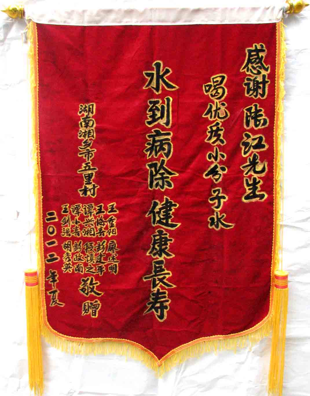 新疆63歲的賀兆生飲用一年,冠心病未愈,他用電話介紹是食堂管理員,問他食量多少?說吃七八分飽,睡前還吃兩袋牛奶,陸 江說我在論文和書中多次批判“吃七八分飽”,關照患者務必用“己饑方食”控制主食肉食量,要他把牛奶改在早中餐吃,減少主食肉食量,建議不吃晩餐,晚上只吃一個蘋果,再經(jīng)幾個月補水節(jié)食,治愈了21年的冠心病和肥胖、失眠等病,信中由衷地感激陸 江為再生父母。[13]因為醫(yī)生從未過問他的膳食習慣,只管開處方藥或手術,父母也不會叫他不吃晩飯。