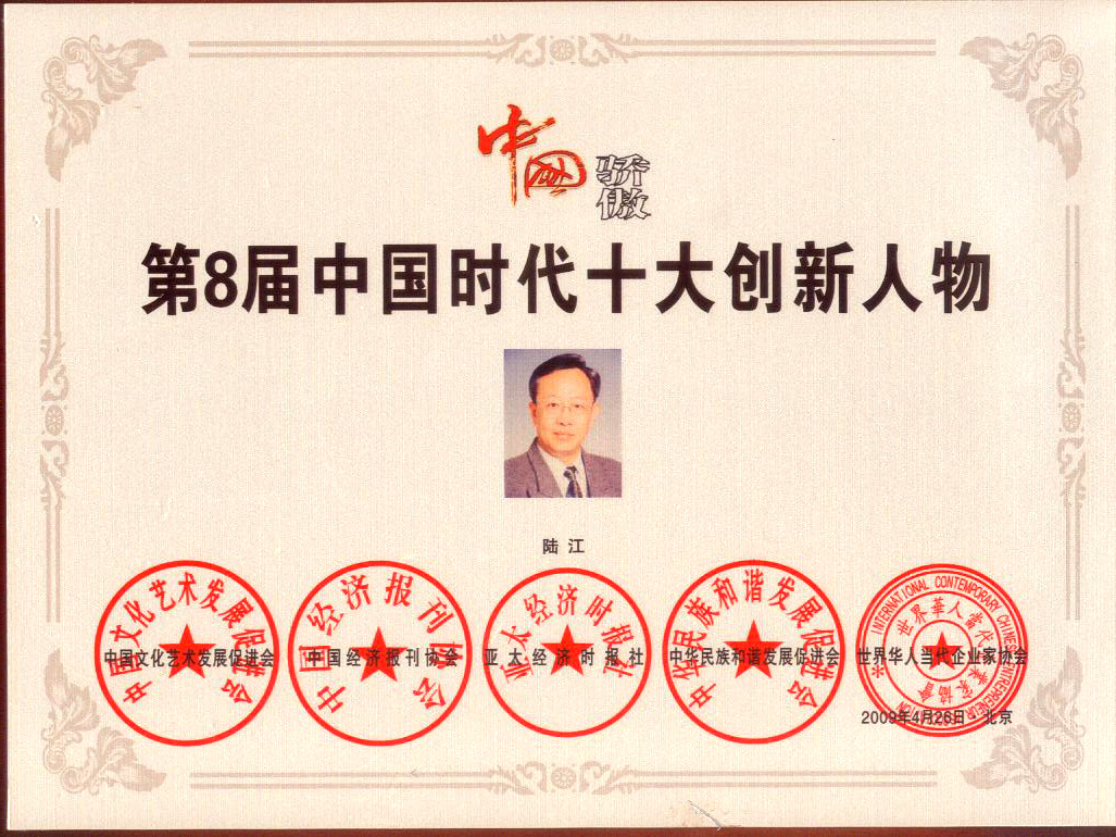 陸江的論文獲一等獎榮譽證書-- 陸江論文獲創(chuàng)新論文獎牌